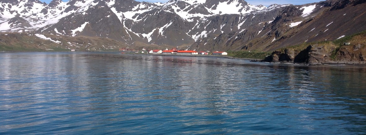 On 21st December, 2015, nidotherapy came to South Georgia. Peter and Helen Tyrer gave a lecture, followed by a lively discussion, at King Edward Point, the base of the British Antarctic Survey ( the red-roofed building near the middle of the photograph). The South Georgia and South Sandwich Islands Government is acutely conscious about the environment, and has just completed an operation to remove all rats from the island. This has been carried out in three phases, the last in 2015, and at present it is looking as though it will be successful. A comparison was made in the lecture between the environmental needs of the native fauna and flora of South Georgia and the needs of those with chronic mental illness. There are not many native plants and animals in South Georgia and life is pretty precarious on a very rocky windswept island with mountains and glaciers dominating its few sheltered bays and coves.